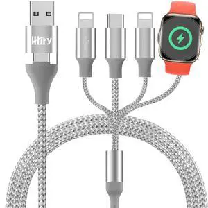 Travel Essentials 4in2 Multi Charging Cable, 2Pack 6ft USB A/C to Dual IP/Type C/Watch Charger Cable, Charging Cord Compatible Watch Ultra/SE/1-11/ iPhone17 Pro Max/iPad/AirPods/
