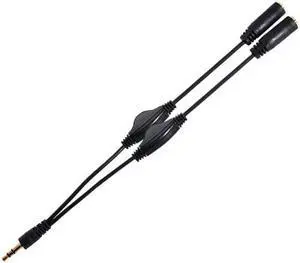 Cablecc Black 3.5mm Stereo Male to Double 3.5mm Female Audio Headphone Y Splitter Cable with Volume Switch