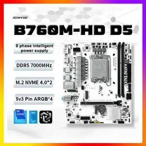JGINYUE B760M-HD D5 Motherboard Support 1700-Pin DDR4/DDR5 Support 12th/13th/14th Gen Core i3i5i7i9 2*DDR5 2 M.2 NVME 3 SATA3.0