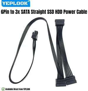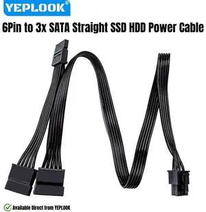 YEPLOOK 6Pin to 3x SATA Straight, SSD HDD Power Cable for Corsair RM Series Modulars, RM1000, RM850, RM750, RM650, RM550, RM450