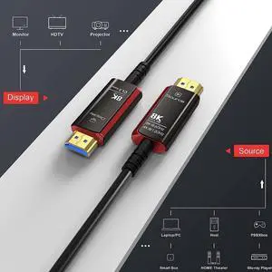 33ft 8K HDMI 2.1 Cable, Fiber Optic HDMI Cable, 48Gbps Ultra Speed, 8K 60Hz, 4K 120Hz, HDR, 3D, eARC, in Wall CL3 Rated, Slim and Flexible HMDI CableLimited time offer, ends 02/13