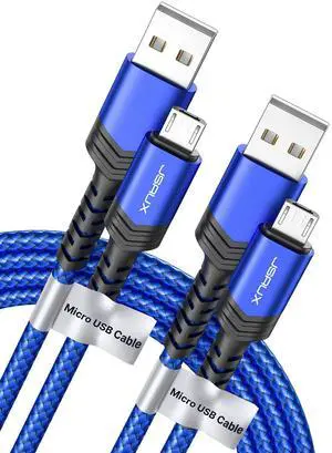 Micro USB Cable for Android, (2-Pack 6.6FT) Kindle Charger Cord Replacement, Nylon Braided USB Micro Charging Cable Compatible with Galaxy S7 S6 J7 Edge Note 5, Kindle, MP3-Blue