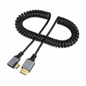 CY 90 Degree Right Angled Mini HDMI 2.1 Male to HDMI Male 8K 60hz Stretch Coiled Cable 100cm for HDTV Computer Laptop Monitor