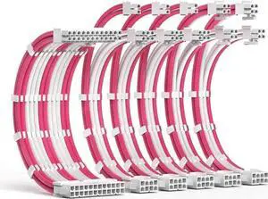 PSU Cable Extension Kit 30CM Length with Combs,1x24Pin/2x8Pin(4+4) EPS/3x8Pin(6P+2P) PCI-E/PC Sleeved for ATX Power Supply,(White & Pink)