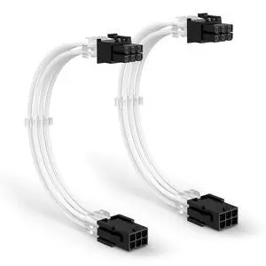 6 Pin PCIe Power Extension Cable, 11.8 inch GPU Male to Female Braided Sleeve Cord with 6 Cable Combs, for Graphics Card, White, 2 Pack