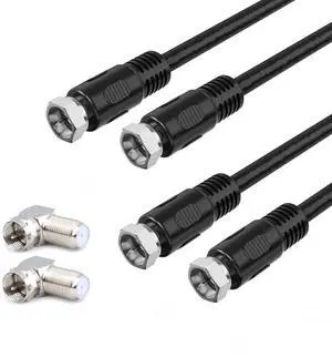 Coax Cable, 3ft, 2-Pack Black 75 Ohm Quad Shield TV Antenna Cables with F-Male Connectors, Ideal for TV