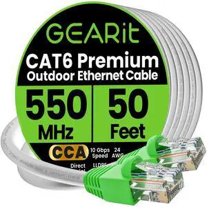 GEARit Cat6 Outdoor Ethernet Cable (50 Feet) CCA Copper Clad, Waterproof, Direct Burial, In-Ground, UV Jacket, POE, Network, Internet, Cat 6, Cat6 Cable - 50ft