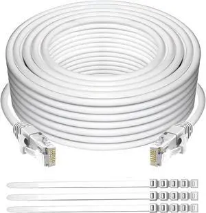 Adoreen Cat 6 Ethernet Cable 300 Ft-White, High Speed Long Internet Network Cable(6 Colors to Select) Soft Flexible Sturdy, POE, RJ45 Cat 5 5e Patch Cable Cord, Tangle-Free Tight Connection+15 Ties