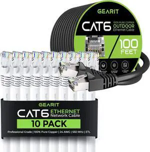 GearIT 10Pack 25ft Cat6 Ethernet Cable & 100ft Cat6 Cable