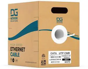 DG Cat6 Riser (CMR), 1000ft, Unshielded, 24AWG, with Spline (+), Solid Bare Copper, 600MHz, ETL Listed, Indoor/Home/Commercial Use, Bulk Ethernet Cable, White- Model #: C0A398287560440426