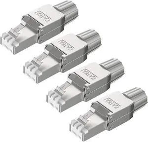 VCELINK RJ45 Cat6A Connectors Tool-Free Reusable Shielded Ethernet Termination Plugs for 23AWG SFTP UTP Cable, 10G Easy Internet Plug, Fast Field Installation 4 Pack