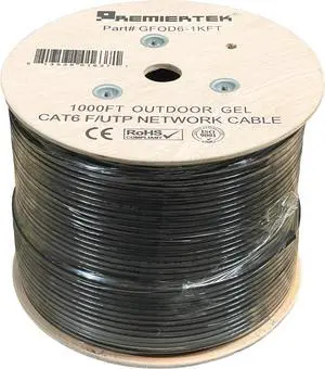 Premiertek 1000ft CAT6 Gel Filled Shielded FTP Outdoor Direct Burial Network LAN Cable (Black)