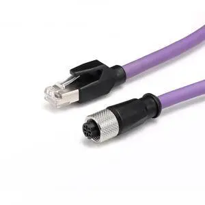 Ethernet M12 4 Pin D Coded RJ45 Cable for Keyence IV2 Omron Datalogic Machine Vision Profinet Network Sensor Actuator CAT5e Shielded PVC 50m