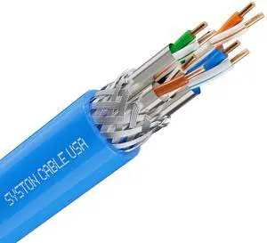 Syston Cable Cat8 Ethernet Bulk Raw Cable 2000MHz 2GHz 40GB 500 ft Solid Bare Copper S/FTP Individual electromagnetic Tinned Copper Braid Shield 22/4 4 Pair 22 AWG CMR FT4 UTP Blue Order to Cut