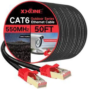 50ft Outdoor Cat6 Ethernet Cable - 26AWG Heavy-Duty, Waterproof & Direct Burial, Weatherproof for Network Adapters, Hubs, Switches, Routers (RJ45)