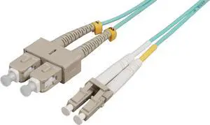 Intellinet 2 m LC to SC UPC Fiber Optic Patch Cable, 2.0 mm, Duplex, OFNR, OM3 Multimode, Aqua, 50/125 µm, Bend Insensitive Multimode Fiber (BIMMF), 6.6 ft