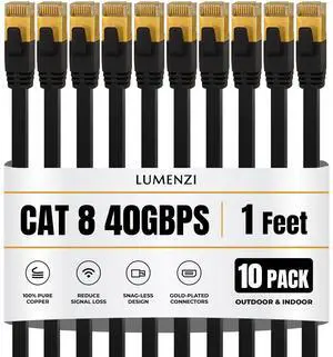 Cat8 Round Black Ethernet Cable 1ft,5ft,10ft,25ft,40ft,50ft,100ft,500ft,1000ft, 1 Pc Pack, 40Gbps 2000MHz Network Patch Cord, S/FTP Shielded LAN Cable