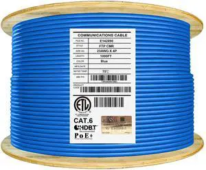 Elite Cat6A Shielded Riser (CMR), 1000ft, FTP 23AWG, Solid Bare Copper, 650MHz, 10Gb Speeds, UL Listed, UL-LP Certification, Higher Performance PoE, Bulk Ethernet Cable Reel, Blue