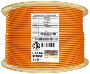 Elite Cat6A Shielded Riser (CMR), 1000ft, FTP 23AWG, Solid Bare Copper, 650MHz, 10Gb Speeds, UL Listed, UL-LP Certification, Higher Performance PoE++, TAA Compliant, Bulk Ethernet Cable Reel, Orange- Model #: vfrtR256629245173