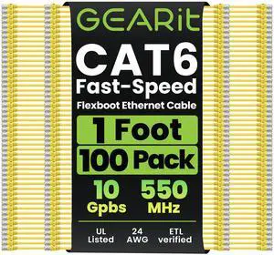 GEARit Cat 6 Ethernet Cable (100-Pack 1 Foot) Cat6 Network Patch, 10Gbps, RJ45, Snagless Cord, Gold-Plated Connectors, Internet for PC, TV, Tablet, Router, Printer, Servers, IT Data Center - Yellow