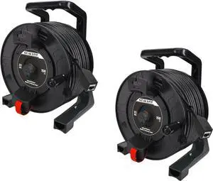 (2-Pack 150FT Cat.6A S/FTP Indoor/Outdoor Retractable Ethernet Network Cable Extension Reel, RJ45 Female-Female Cat.6A Shielded Portable Weatherproof Ethernet Extension Cord