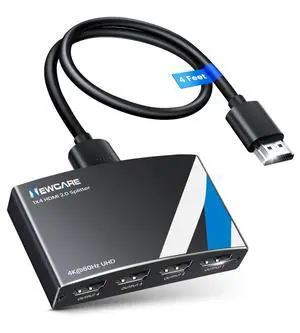 4K@60Hz HDMI Splitter 1 in 4 Out w/ 4ft HDMI 2.0 Cable, 4K HDMI Splitter Auto Downscaler, Mirror Display to 4 Monitors(Not for Extended Display),Support Dobly Vision& Atmos, HDCP 2.2, 18.5Gbps