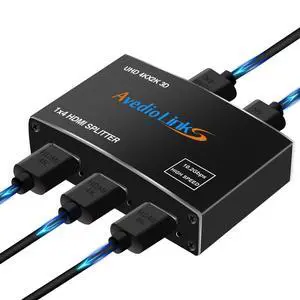 4K HDMI Splitter 1 in 4 out Duplicate / Mirror 4K Screens w/ Down Scaler 4 Ports Upto 4K@60Hz 1080p & 3D Supports EDID Control, UHD-PRO104