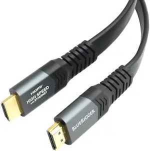 4K Flat HDMI Cable (15FT) - (4K 60Hz, Ultra HD, 18Gbps High Speed, HDR 10+, Wall Mount Slim HDMI Cord, eARC, Dolby Vision & Atmos) - Compatible with HDTV, Monitor, PS5, Xbox, Blu-ray