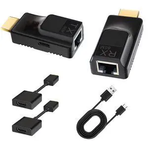 Hdmi Over Ethernet 196ft Audio 1080p@60hz Video Over Cat5 Cat6 Ethernet Cable Plug and Play with HDMI Converter Cable,Type-C Power Cable for Home Theater, Classroom