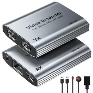 4K HDMI Extender, 1080p HDMI Over Ethernet Cable Cat5e/6/7 up to 50m/164ft, Loop-Out, PoC, IR Control Supported, HDMI 1.3 HDCP - Grey
