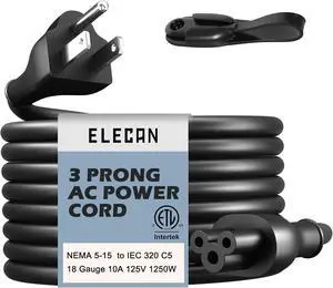 Mickey Mouse Replacement Laptop Power Cord 15 Ft Seamless 5-15P to IEC 320 C5 3-Prong Universal AC Printer Cable for PC Notebook Charger HP LG TV Monitor 18AWG 125V ETL+ Organizer