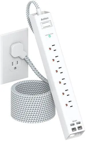 6-Outlet Surge Protector Power Strip, 6ft Cord, 360° Rotating Plug - 1080 Joules Protection