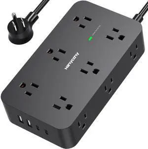 Power Strip Surge Protector with 12 Outlets 4 USB Ports(2 USB C), Black Flat Extension Cord 6 Feet, 1800J, Wall Mount, Desk Charging Station for Office Home College Dorm Room Essentials
