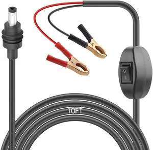 Starlink Mini 12V Adapter Direct to Battery 12V-48V Alligator Clips to DC Power Cable for Starlink Mini Accessories with Switch DC 5.5 * 2.1mm to Clamp Power Cord for Car Truck RV Boat 10FT/3M Black