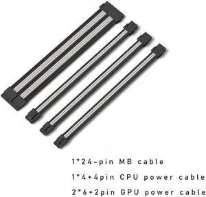 Mod Sleeved Cable, Black & Gray Power Supply Cable Extension Kit, 24PIN ATX, 4+4 PIN EPS, Dual 6+2 PIN PCIE(11.81")