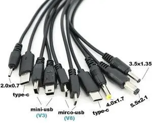 20cm 10 in 1 Micro USB DC Mobile Phone Charger Adapter Plug Usb power charging Cable Wire Cord for Phone Universal L1