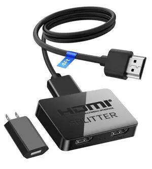 4K HDMI Splitter 1 in 2 Out with Power Adapter and 4Ft Hdmi 2.0 CableMirror 1 Source Screen to 2 Display Devices-Not for Extended Display, 1x2 HDMI Splitter Compatible with PS4, HDTV, Monitor