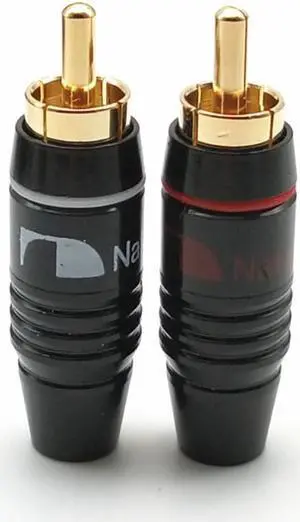 2pcs RCA Plug Gold Plated 6.4mm Male Double Self-Locking Lotus Wire Connectors Audio Adapter