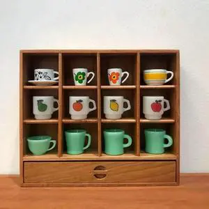 Aomoproing 1/6 Cup Holder Storage Rack Solid Wood Mini Bookcase Cabinet Doll House Mini Model Dollhouse Studying Room Accessories