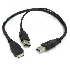 FOR USB 3.0 A Male to Micro USB Male 3 Y Cable with Extra USB Power for 2.5" Mobile HDD 60cm