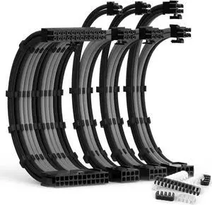 Tech Cabin PSU Extension Cable Sleeved Custom Mod PC Power Supply Cable, Soft Nylon Braided with Comb Kit 1x24PIN/2x8PIN to 6+2Pin/ 1x8PIN to 4+4PIN-30CM 300MM - All White Edition