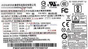 For AcBel/Kangshu FSE014 930G Rated 650W Server 1U Power Supply Dual CPU Interface