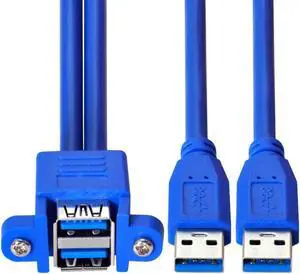 JAENFONG USB 3.0 Type A 2 Male to 2 Female Extension Cable 50cm with Screw Panel Mount Holes