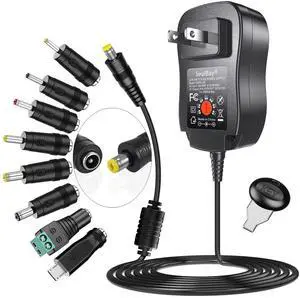 24W Universal AC/DC Adapter 12V 9V 7.5V 6V 5V 4.5V 3V Regulated Switching Power Supply with 8 Selectable Plugs for LED Strip Light Camera Keyboard Speaker Scale Recorder Massager, 2A Output