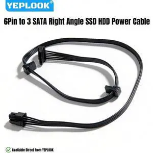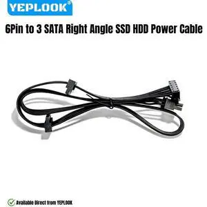 YEPLOOK 6Pin to 3x SATA Right Angle, HDD SSD Power Cable for Corsair RM1200e, RM1000e, RM850e, RM750e RM-e Type 4 Modular Powers