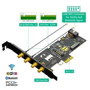 NGFF M.2 Key B Key A to PCIe X1 Adpater for 3G/4G and Card With SIM/UIM Card Slot Support NANO/Micro SIM/Standard SIM Card