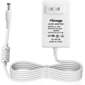 12V 5A Power Supply Adapter 60W AC Adapter 100-240V 50-60Hz to DC 12 Volt 5 Amp Cord with 5.5mm x 2.5mm Barrel Plug, 12VDC AC/DC Switching Transformer Converter