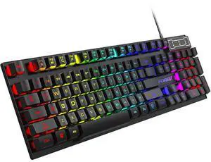 Keyboard 104 Keys Wired Rainbow Gaming Keyboard Universal Waterproof Backlit Laptop/Tablet English Version Office Desktop Laptop