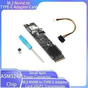 M.2 NVME to TYPE-E Adapter Card 20GPS Transmission ASM3242 Chip Small 4pin Power Connector M.2 M KEY Heat Sink Type-E Connector
