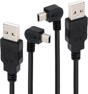 Jimier 2pcs/lot Left & Right Angled Mini USB B Type 5pin Male 90 Degree to USB 2.0 Male Power Data Cable 50cm